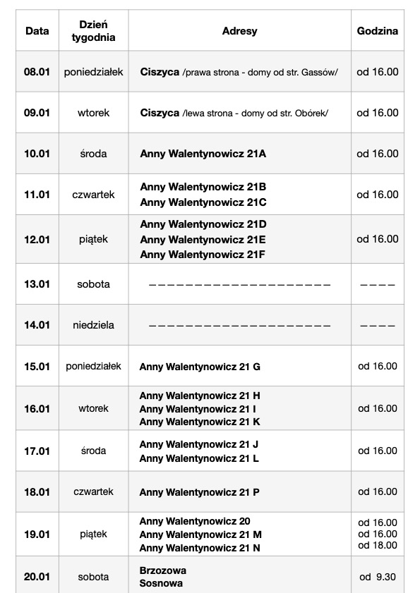2. Porządek kolędy 8 – 20 stycznia 2024:
