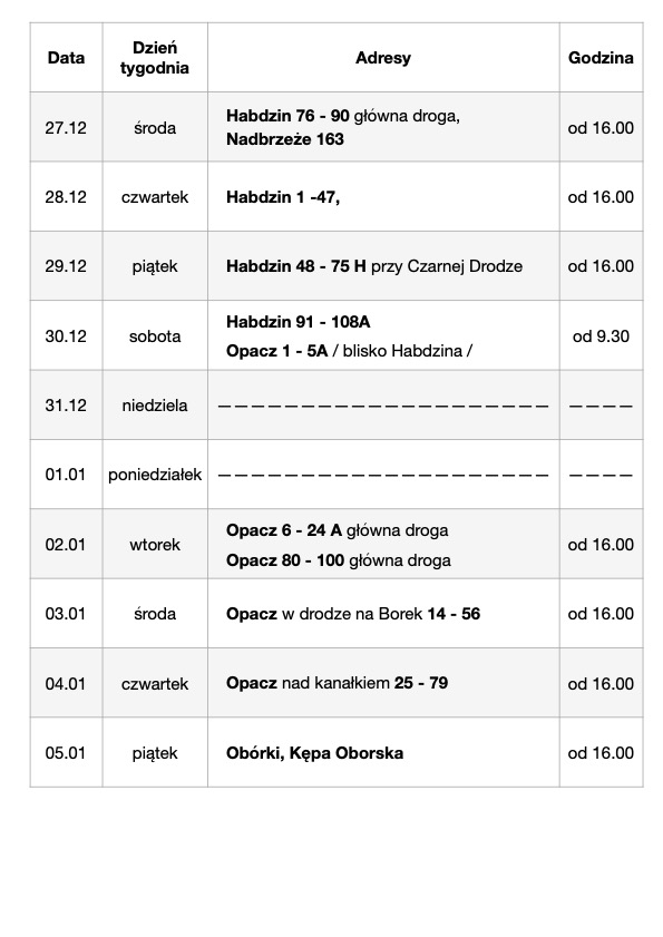 - W sobotę 6 stycznia, przypada Uroczystość Objawienia Pańskiego. W czasie każdej Mszy św. błogosławieństwo kredy i kadzidła. Ofiary składane w tym dniu przeznaczone są na misje. Zachęcamy do udziału w ORSZAKU TRZECH KRÓLI.